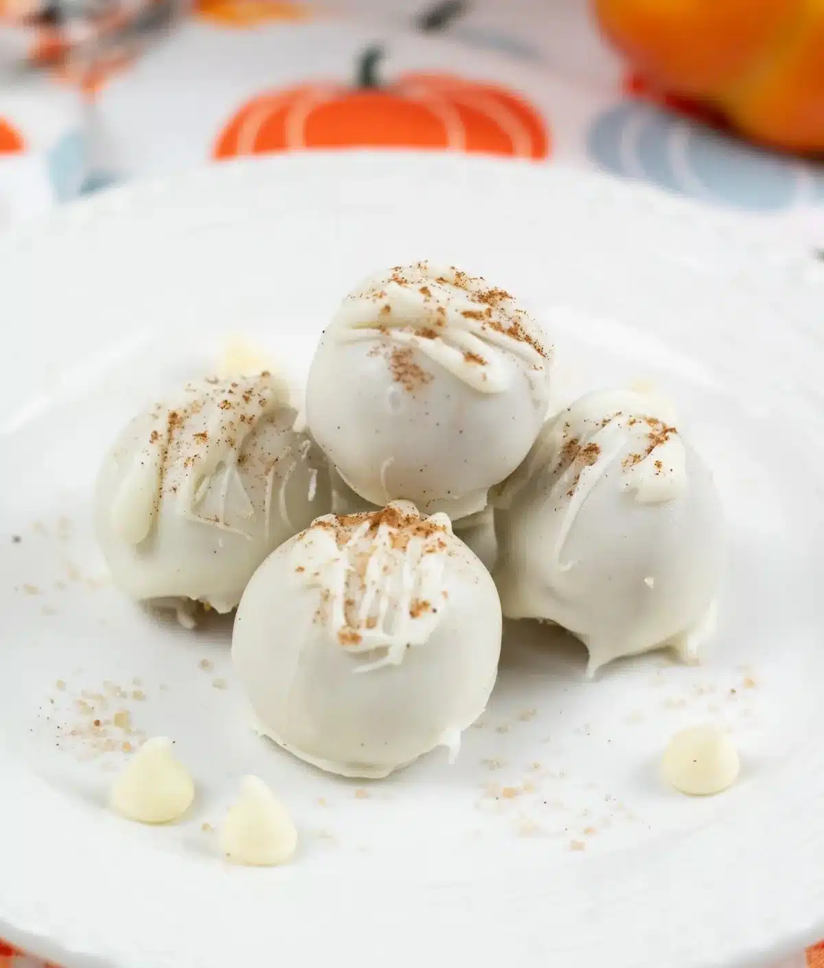 Finally, let the finished pumpkin balls chill in the refrigerator for about 20 to 30 minutes until completely hardened. Once set, they can be transferred to a serving dish or platter. These No Bake Pumpkin Balls look and taste amazing and are bound to be a hit at any gathering. Enjoy tasting the flavors of fall in every bite!
